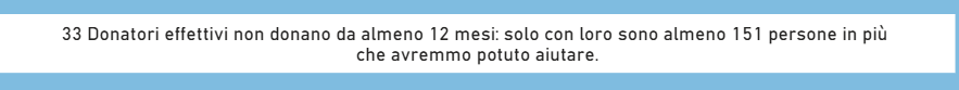 Attenzione, serve un saldo di almeno 7 nuovi donatori attivi all'anno solo per sostenere la fuoriuscita di chi raggiungerà i limiti di età (65 donatori oltre i 55 anni oggi)